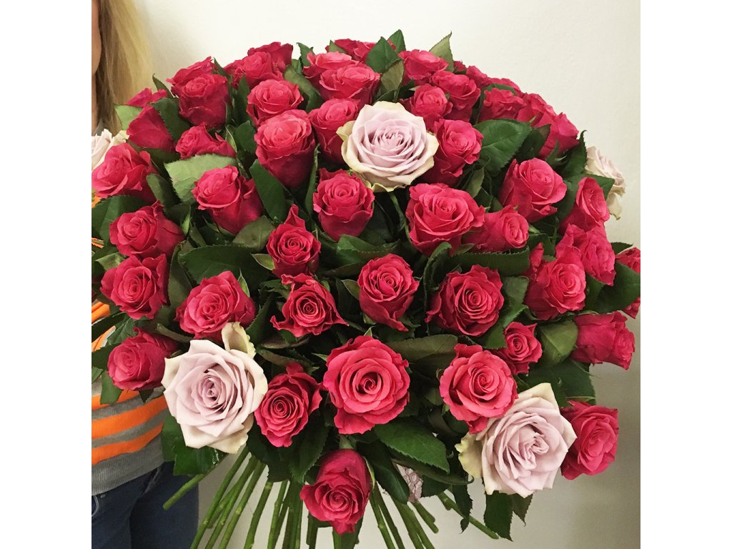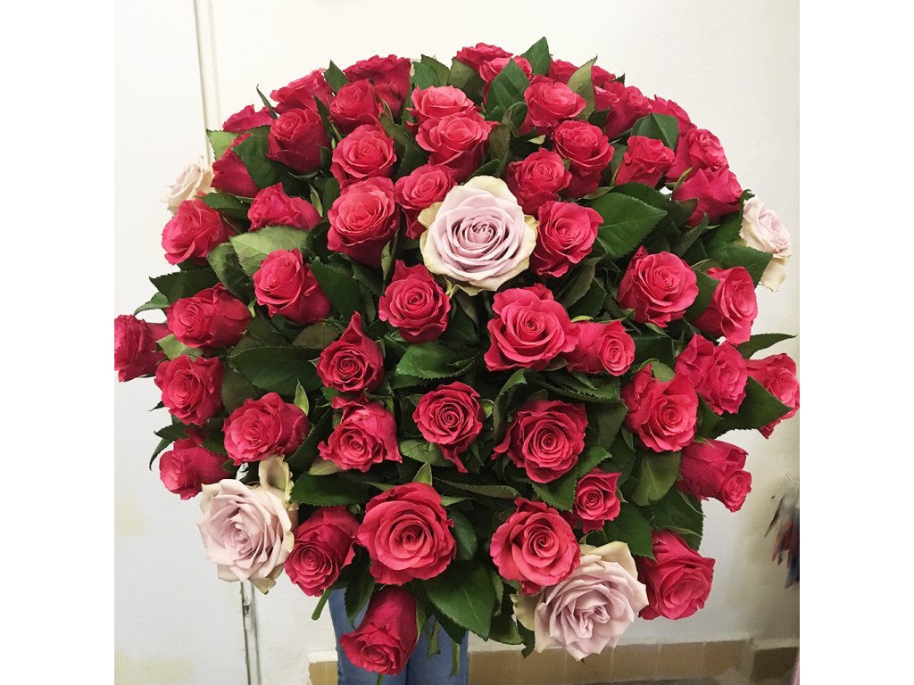 Kytica je viazaná z 60 cyklámenových ruží a svetloružových ruží previazaných stuhou.