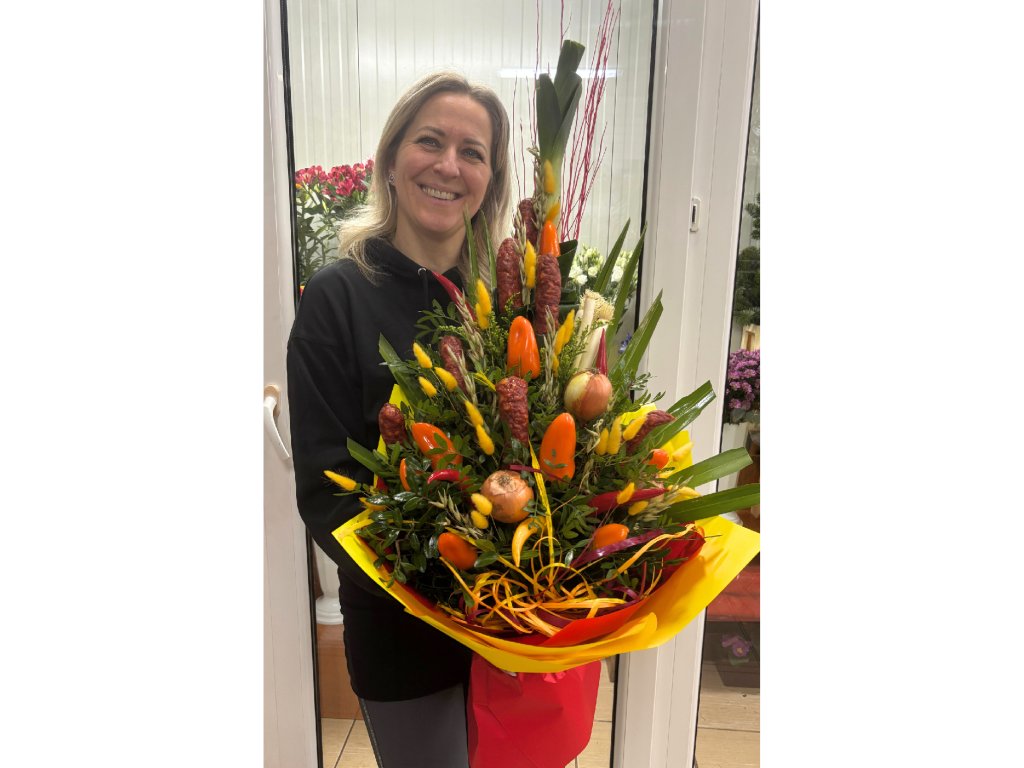 Kytica je zložená z palmového listu, farebného konára, pistácie, aspidistry, póru, klobás, chilly papričiek, cibule, malých paprík, zelenej cibuľky, sušených doplnkov, mašľou ukončená vodeodolným farebným papierom.