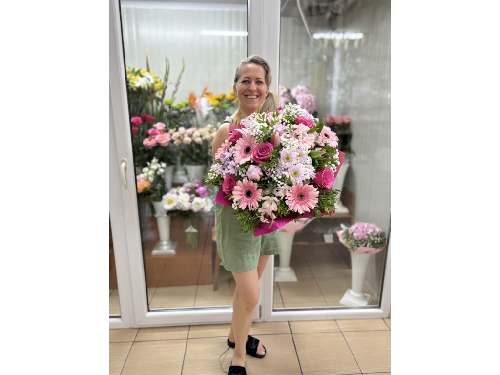 Táto ružová kytica s gerberami a ružami nie je len dar, ale aj vyjadrenie emócie. Prináša jemnosť, pokoj a krásu – dokonale doplní každý deň a rozžiari každý priestor.