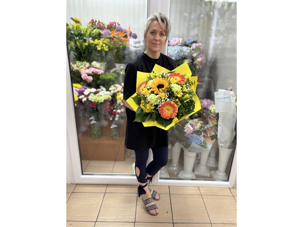 Táto kytica so slnečnicami a gerberami je viac než len dar – je to energia zabalená do farieb. Každý jej kvet pripomína, že aj malá pozornosť dokáže rozžiariť deň a priniesť úsmev.