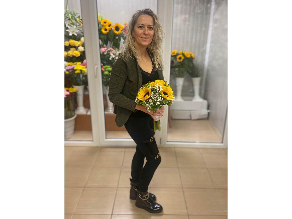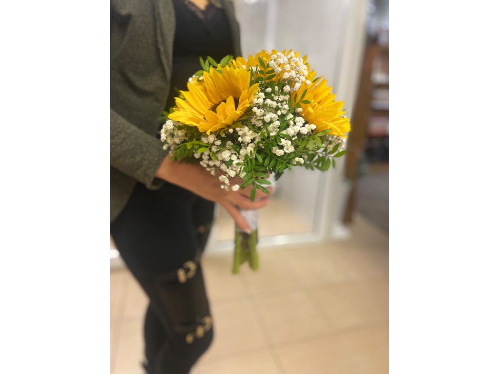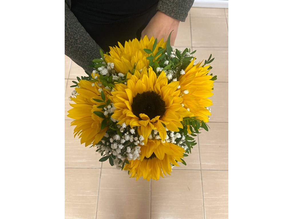 Kytica je zložená z slnečníc, gypsophily, zelene a doplnkov.