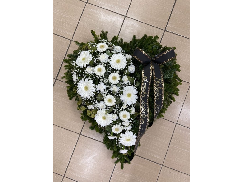 Smútočný veniec v tvare srdca – Biely symbol lásky a úcty – je viac než len kvetinová ozdoba. Je to vyjadrenie hlbokej emócie, vďaky a lásky, ktorá trvá aj po odchode.